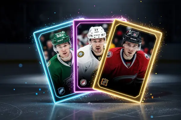 Six cards. One lineup. Set it before the games start and your squad scores off every real goal, assist, and save on the ice.